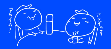 そりゃそうだ。今は11月。暑いっつってちゃノウミソ大丈夫ですかな人になってしまう。 10月中は半そでだったが11月に入って一変。風がなかなかコールドな感じに。 まぁそれ以上に他の人から見て視覚的にツライそうな。なもんで自粛したってのも。 しかし長袖。動くとまだ中途半端に暑い。これがまた寝るのに適度な温度なもので眠い。 どうしたものか。そんなわけでたまにはホットなコーヒーでもなと。 休憩時間。 普段のコーヒーはあくまで目覚ましの手段。味わったりしません。 一気飲みするにゃ冷たくないといかん。だが今日はホット。一気飲めません。 そんなことを話題にして自分の劣等点をさらけ出す俺。 ちびりちびり飲む。いやー実感できるね。苦いと。 やっぱ俺は苦いの自体は苦手なんだわー。 はい。苦いんです。どうも。 一気飲みもったいない。一気飲み体にわるい。と、俺が一気飲む姿を見て人はそう言う。 いやでも一気飲まないと。苦いし。 そこへ無慈悲にも休憩終了のチャイム。 は、は、はやく飲まないと! でも熱い! でも休み時間終わり! でも苦い! さぁどうする! どうするんだよ!!