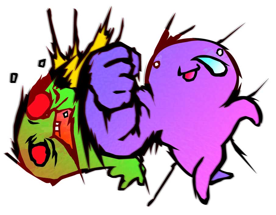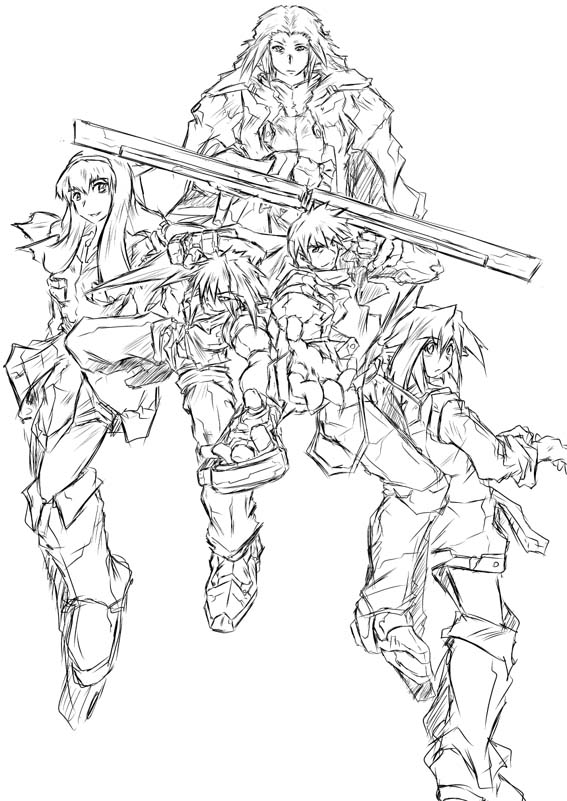 えー現在ワタクシ、創作物を作成しています。 ・・・・・苦悩中なんでございますがね; ホットメールでフレンド登録されている方。 俺の欄に「バーチャロン」とか「ブレイブルー」とかいう文字が刻まれていても気にしないでください。 ・・・・いやまぁどうせ片手の指の数より少ないがね。マイミクもやってるフレンド; 具体的にどう苦悩してるかってぇと・・・・ 1.物語製作初心者なもんで陳腐なもんしか作れなさそうーなこと。 2.背景の製作。世界観を表現するために一番必要なモンだが、四苦八苦。 3.新しく購入したソフト「フラッシュCS4」の取り扱い。 4.作業とブログ更新を並行できにゃーい。 1.に関してはもう開き直った。ほーんの1部分しか作ってないがまぁこんなもんだろう、と。 一応いろいろ考えちゃいるから、もうぶつけるしかないしね。もうさ、陳腐だっていいじゃなーい・・・。 2.こーれーがーツライ。今つまづいているところ。背景ですね。 いやぁキャラをドデーンと載せるならなんの苦労もないんだがさ。苦労すっけど。 世界観を表現するならキャラだけじゃ成り立たないんだよコレが! そんなわけで世界観を象徴する建造物とか作らにゃならんのだけど。 パースの知識とか、一応習いはしたが、自在に扱えるかは別の話。 昔から本格的にやっとくべきだったかしら・・・・。 「絵」日記でいくのがモットーな俺だから、途中経過を載せるが・・・ こんな感じか。ま、そういうこった。ハハー! 俺自身量産性重視の画風とはいえ、やっぱムズかしいね。 3.なんだけど。そう、お高い買い物しましたCS4。 どっかからのもらい物を使い続けるのはカッコ付かないとかいう心理が働いたもので、 結構前に購入したんだが、イラスト関係のパーツがぜんぜん出来上がってないもので、 まさに宝の持ち腐れ状態。ま、これからさこれから。ハッハー! 以前のバージョンと本質は同じだといいんだけどねー。 がんばりまちゅ。 4.ブログも露骨に「見て見てー」と宣伝するつもりもないんで、 更新!更新!常時更新!とか無理にすることもないんだけど、 コンテンツの一部分でも潤い保ってないとなー、と。 ネネネネタねぇし、イメージの途中経過でも載せてみっか。 普通体系のばっかでモノタリンが、他はストーリー進み次第だな。 今の段階じゃカラーにする気にならん・・・。 まぁこんなもんで。 この程度のクオリティだがよ。だがよ! 趣味ってことで己の人生に潤いをってことで手ぇ動かしているんでぃ!てことで。 せめて。せめてだ。遠い目で。ホシの裏側から見るくらい遠い目で。見守っていてくれぃ。 そう、目玉だけだ!目玉だけな! なもんで。ちっとブログ更新回数減るが忘れないでやってください。 彼に一体何が起こったのか。
